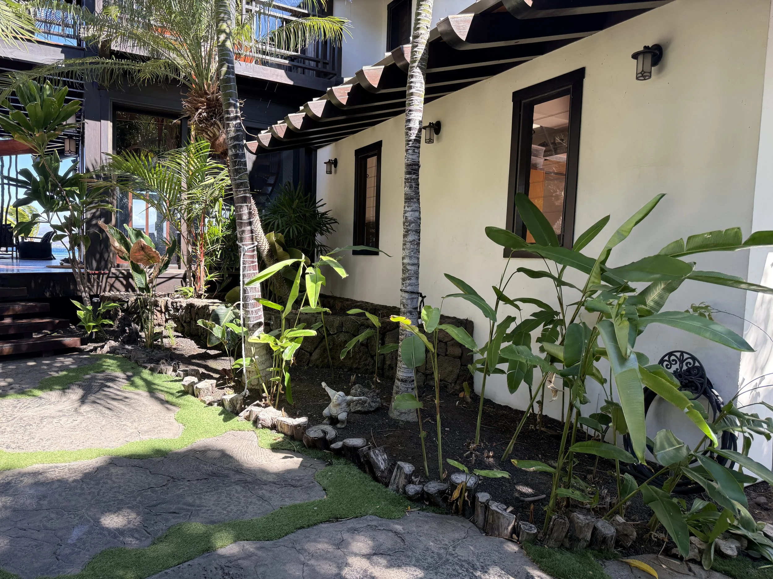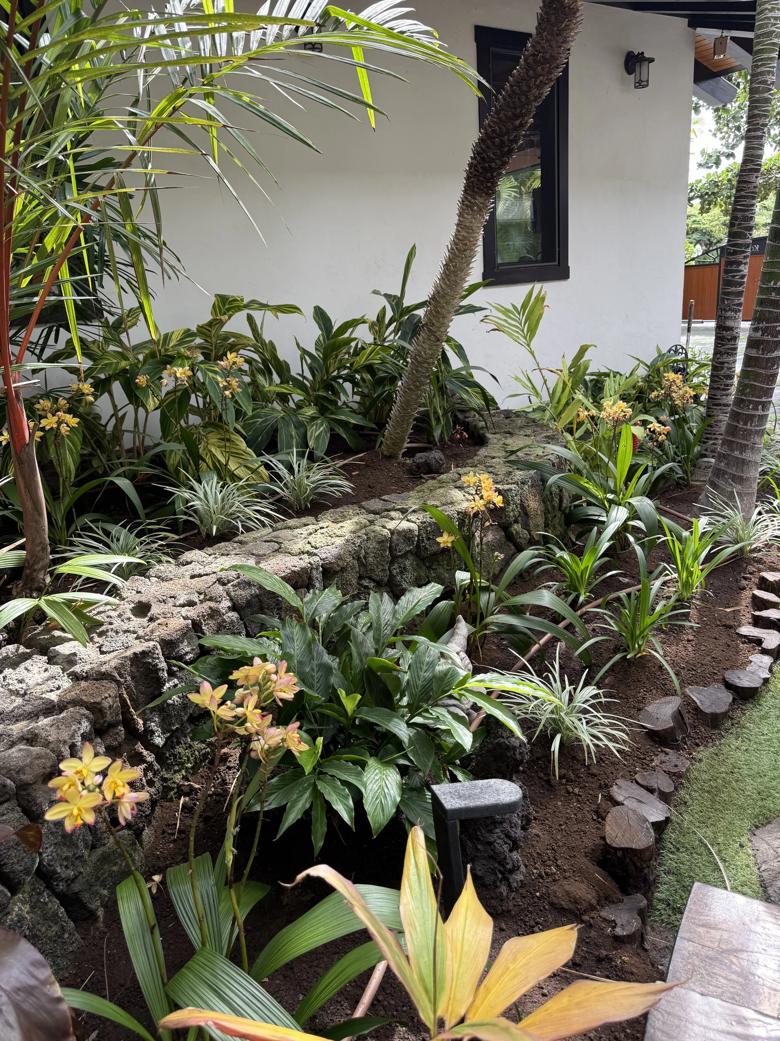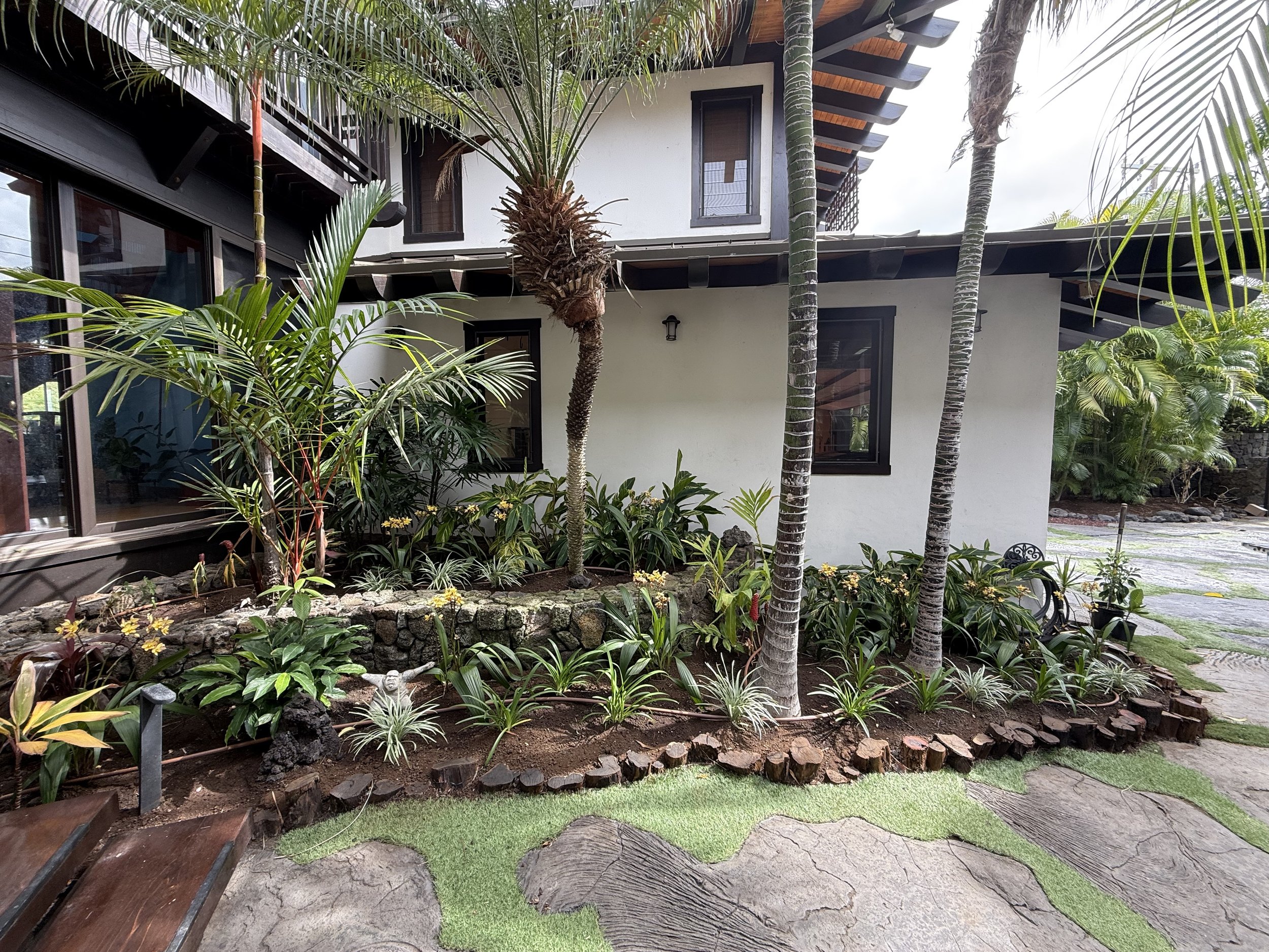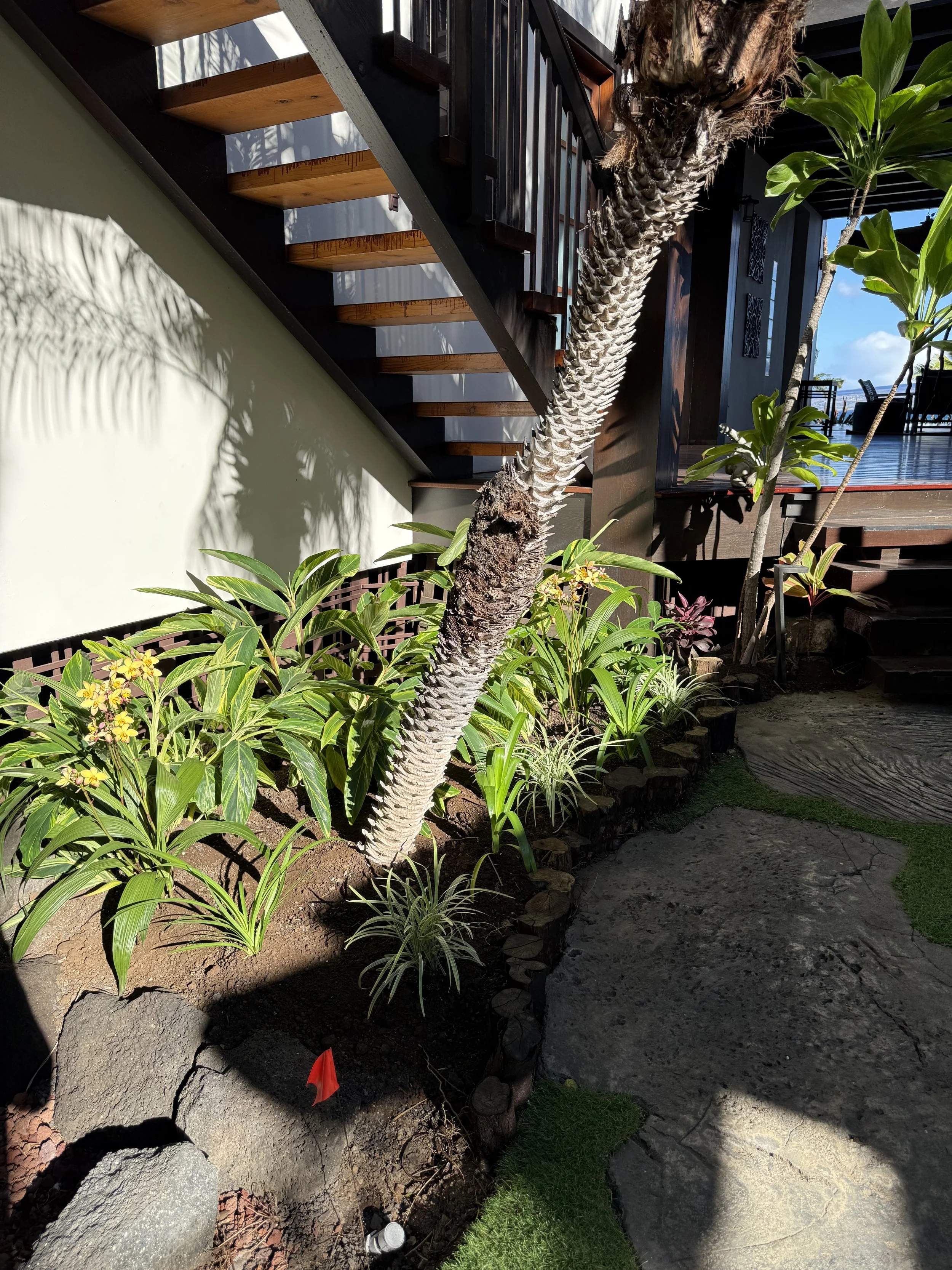 This luxury vacation rental in Puako is as beautiful as can be. Right on the ocean, surrounded by coconut trees on makai side, and a landscape that needed a revamp to brighten up the entrance experience. Our carefully thought out design brought colors, textures , scents, personality and was designed specifically for the weather conditions in Puako (high heat, windy, assorted intense rainfalls) Our new gardens brought meaning and life to this ocean-side oasis. Swipe through our gallery and enjoy seeing the transformation of these gardens from lonely and sad to bright and colorful.
